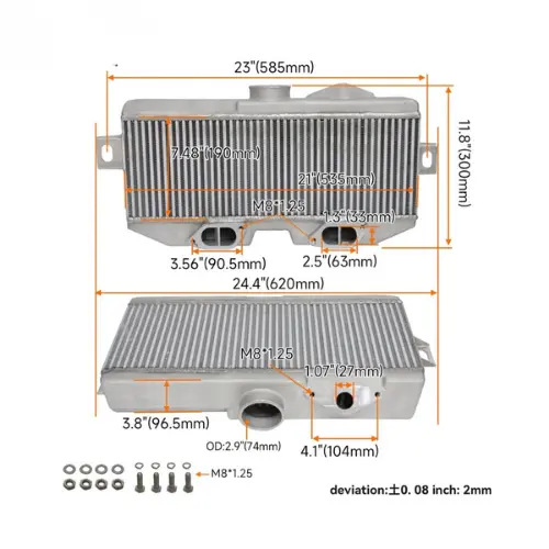 The intercooler features a large, motorsport-grade core, combined with streamlined cast end tanks and a front 6-row enlarged-capacity design, effectively increasing the heat-exchange surface area.