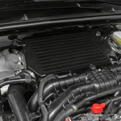 The intercooler uses a large, motorsport-grade core to effectively increase the heat-exchange surface area.