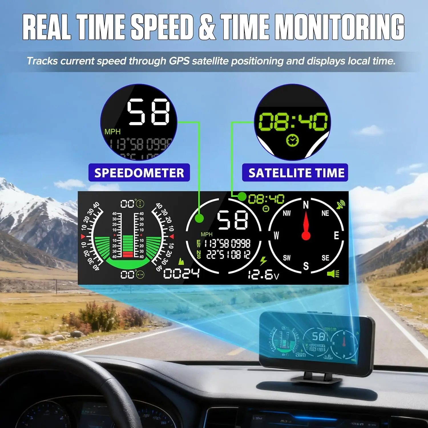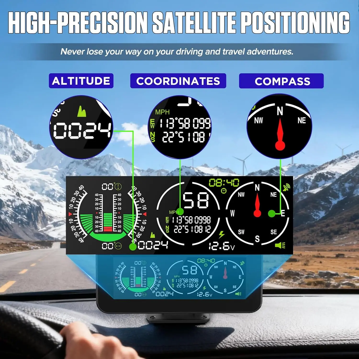 Display Functions: Roll angle, pitch angle, Speed, Altitude, Satellite time